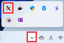 - Windows의 ‘작업 표시줄’의 ‘숨겨진 아이콘 표시’를 누르면 ‘XLaunch’ 아이콘을 확인할 수 있습니다.
