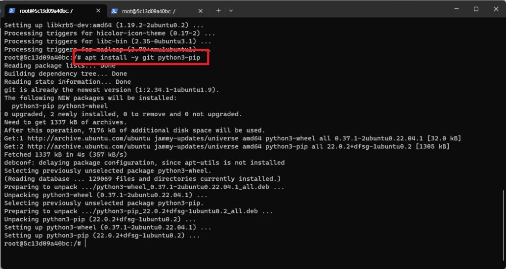 # apt install -y git python3-pip